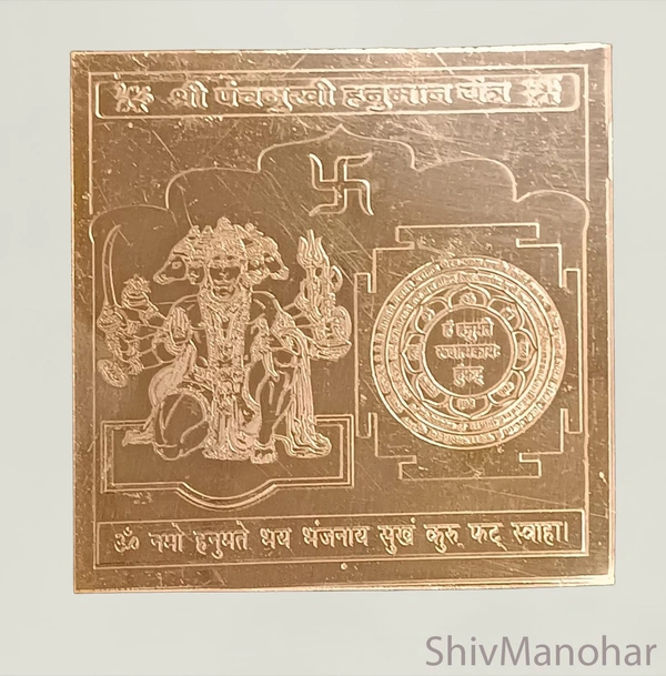 Experience the divine strength and protection of Lord Hanuman in his powerful five-faced form with the Shri Panchmukhi Hanuman Yantra, crafted from pure copper. Each face of Panchmukhi Hanuman represents courage, wisdom, devotion, prosperity, and protection, making this yantra a complete spiritual tool for overall growth and well-being. It is believed to ward off negative energies, remove obstacles, and instill confidence, inner strength, and positivity in everyday life.